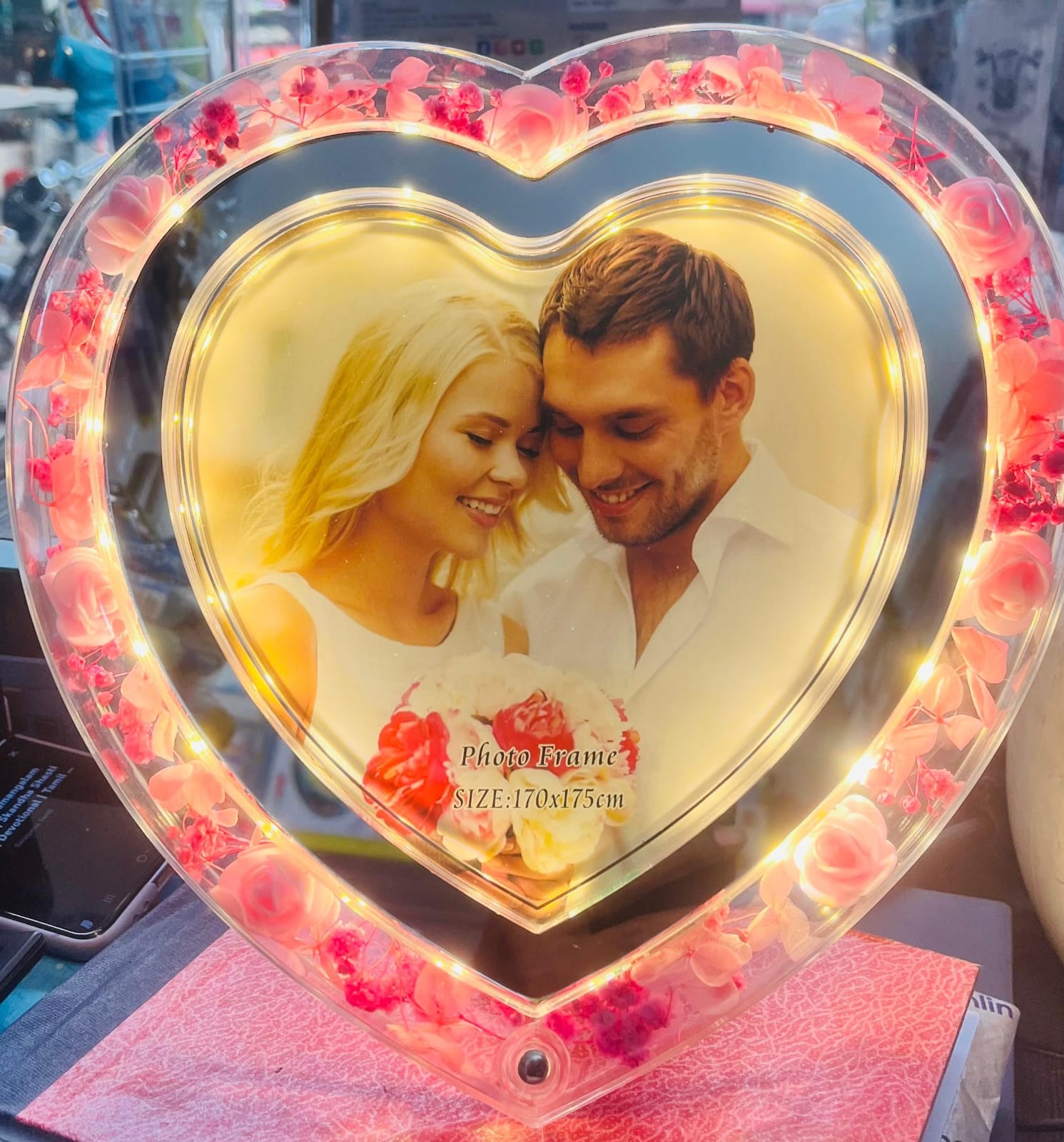 Celebrate love with this beautiful Heart Shape LED Photo Frame designed with soft warm lights and elegant pink artificial roses. This glowing frame adds a magical romantic touch to your special memories.